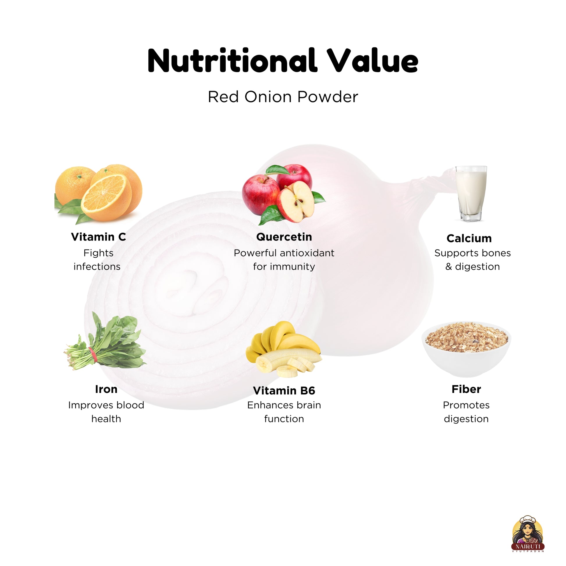Add a burst of rich, savory flavor to your dishes with our 100% Pure Red Onion Powder, made from carefully dried and finely ground red onions. This natural powder is free from artificial colors, flavors, and preservatives, offering a convenient and versatile way to enjoy the taste and benefits of red onions.