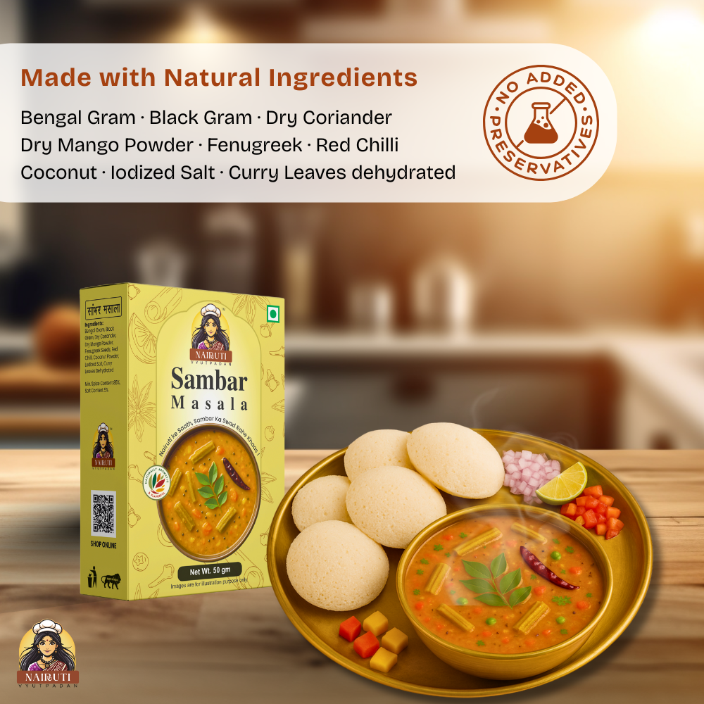 ✔️ Rich in Flavor: A tangy, spicy blend that enhances the taste of sambar.